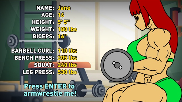 Do you think you can beat muscular 16 year old Jenny at armwrestling? I don't think it's possible. But you can try :)